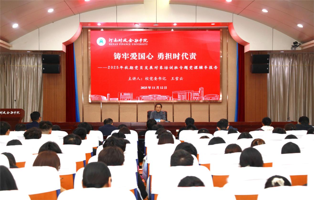 11月12日晚,学校2025年秋期党员发展对象培训班开班。校党委书记王雪云出席开班式并作题为《铸牢爱国心 勇担时代责》的专题党课。校党委副书记方蒙主持开班式。本期228名党员发展对象、各学院党总支书记和党委办公室、党委组织部负责...[详细]