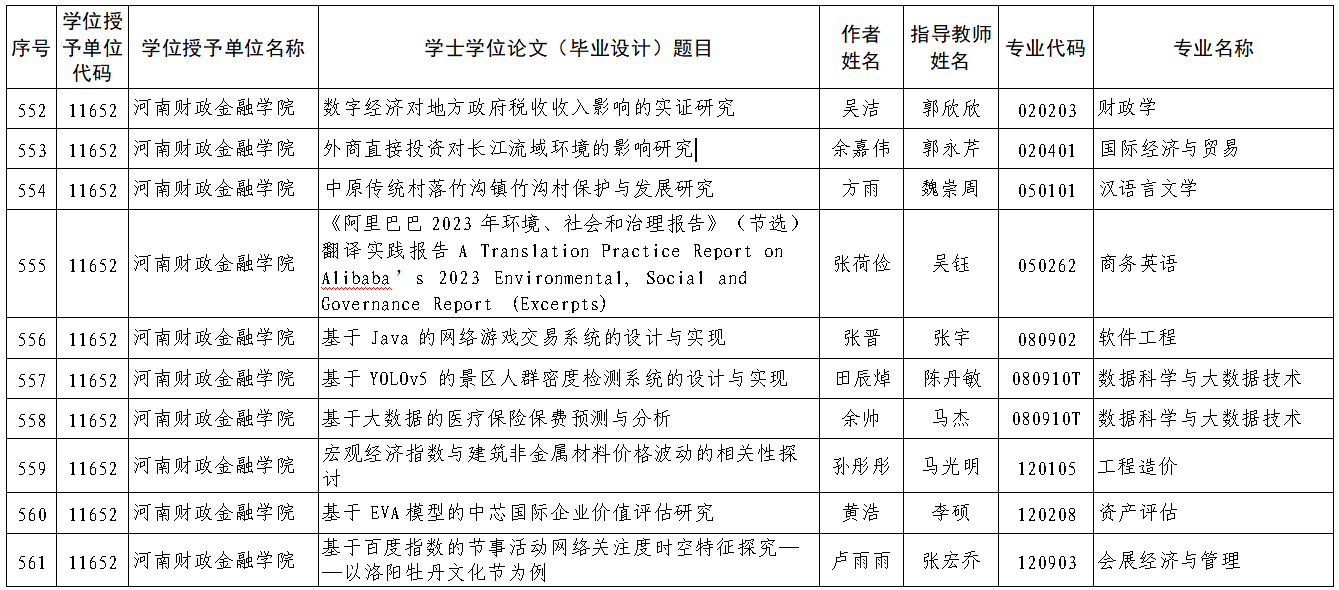 近日,省教育厅公布了2024年河南省优秀学位论文评选结果,我校10篇本科学位论文(设计)荣获2024年河南省优秀学士学位论文。