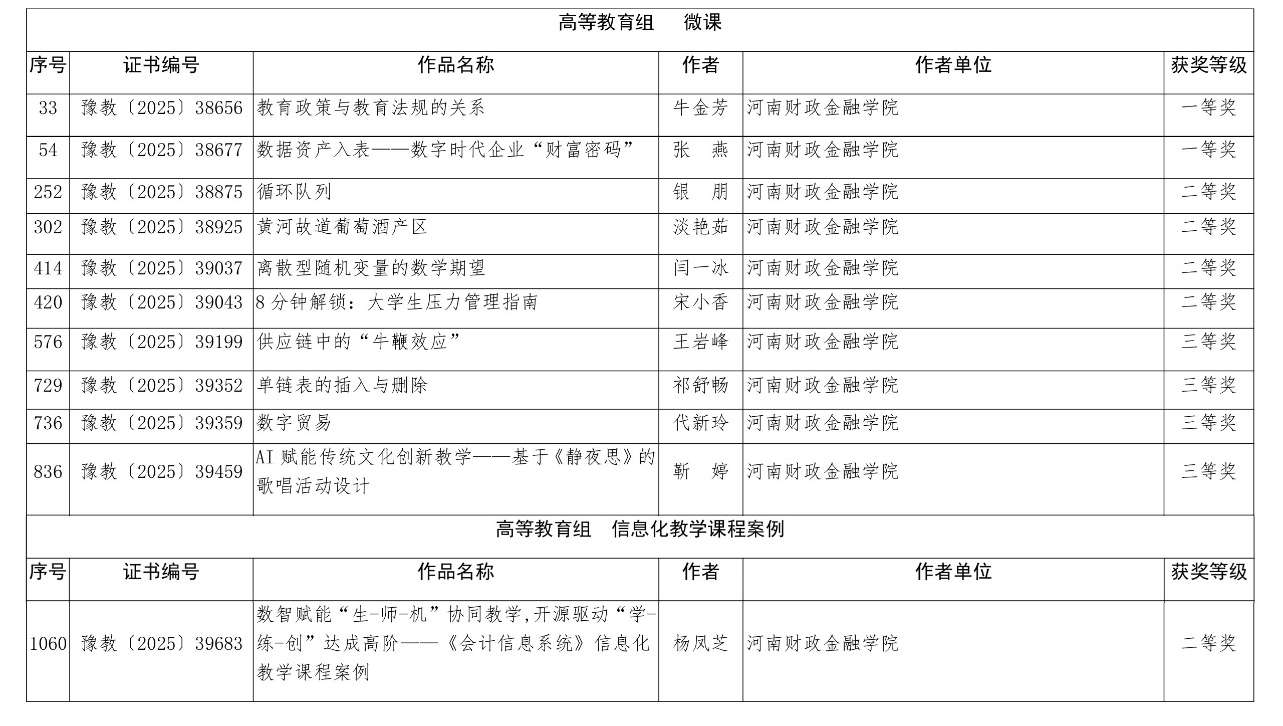 近日,河南省教育厅公布了河南省第二十九届教育教学信息化交流活动评选结果,我校共有11件作品获奖,其中一等奖2项,二等奖5项,三等奖4项。