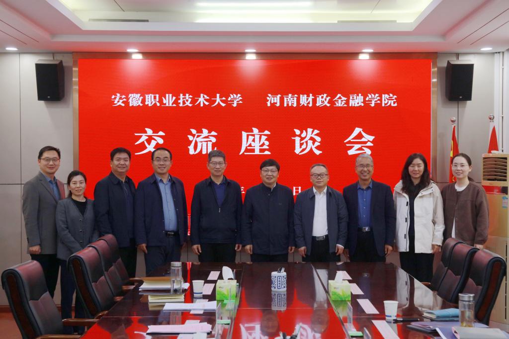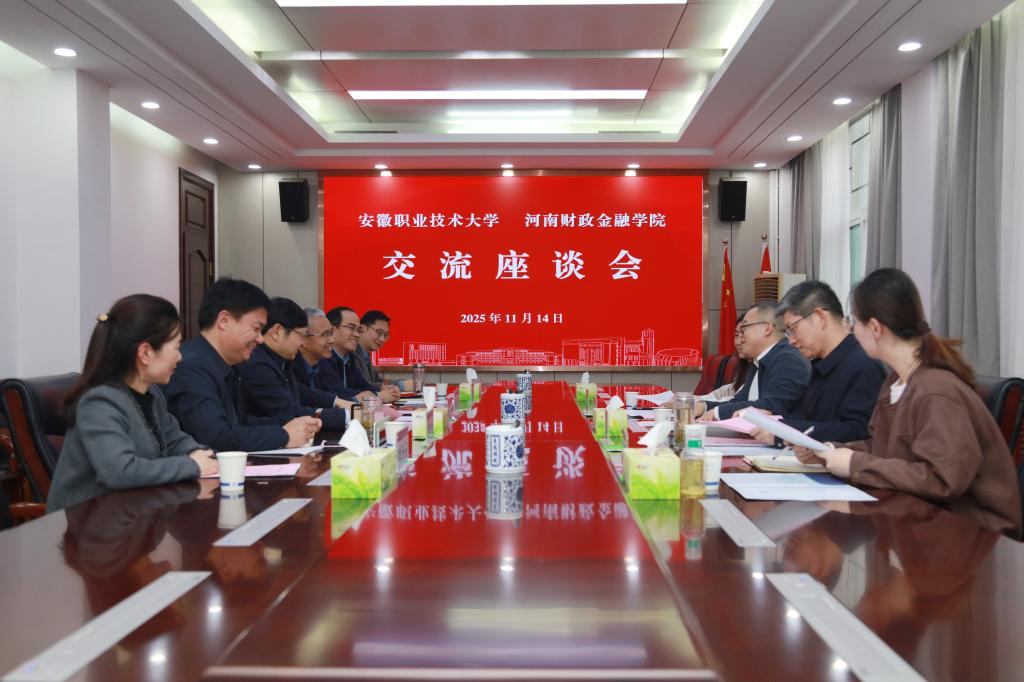 11月14日,安徽职业技术大学行政主要负责人盛鹏一行4人来我校考察交流。校长李学志、副校长孙文杰和校长办公室、教务处、招生就业处、创新创业中心(学院)等部门负责人参加座谈交流。