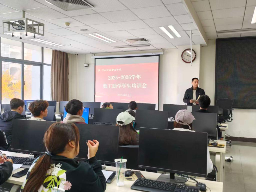 为充分发挥勤工助学育人功能,提升勤工助学学生社会实践能力和自我发展能力,11月5日,学生处会同信息化办公室对2025-2026学年勤工助学学生开展岗前培训。