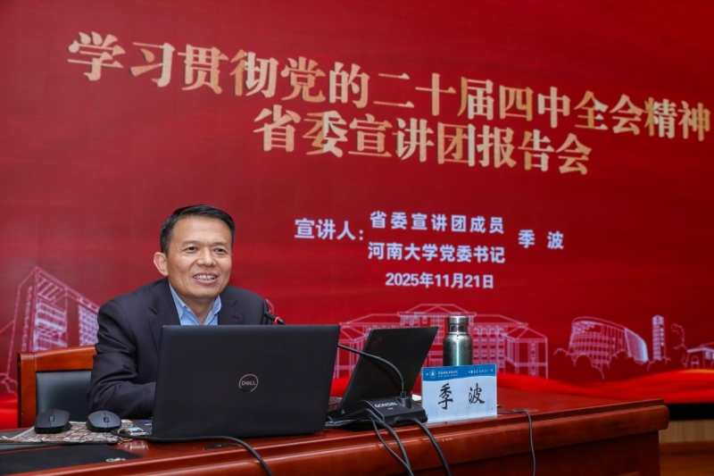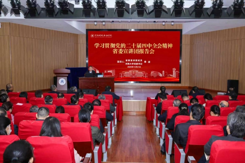 按照省委统一安排,11月21日上午,学习贯彻党的二十届四中全会精神省委宣讲团报告会在河南财政金融学院举行。省委宣讲团成员、河南大学党委书记季波作宣讲报告。该校党委书记王雪云主持报告会。学校领导班子成员、中层干部和师生代表近300人现场聆听报告。
