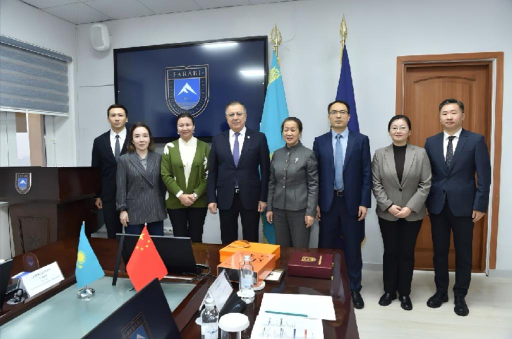 到访哈萨克斯坦阿里·法拉比国立大学时,王雪云介绍了河南财政金融学院财经人才培养特色,特别是近年来我校以大数据和人工智能赋能传统商科、培养“新财经”智能化管理人才的成功探索。图伊梅巴耶夫·詹塞特·坎塞特利校长介绍了学校近年来的发展成就和中哈贸易情况,提议共建经济金融研究中心。王雪云书记对此给予高度评价,并就共建经济金融研究中心、开展科研合作和师生交流、联合教育项目等合作意向进行深入探讨,双方达成尽快签署合作备忘录、加快推进相关工作的共识。
